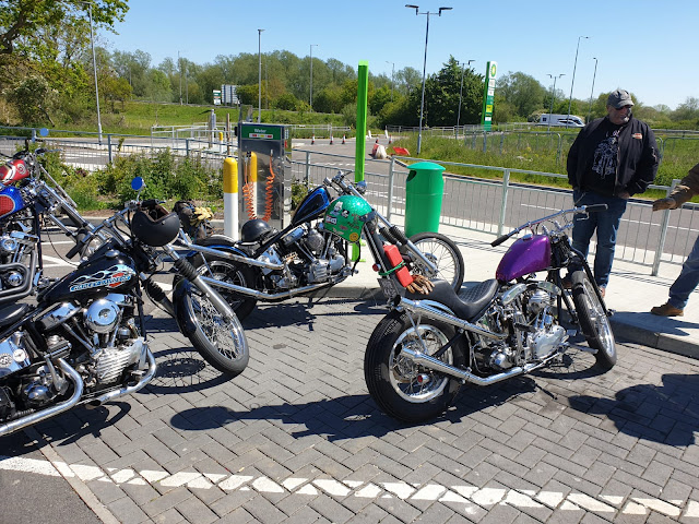 Some pics send in from Brian , our Buddy in England ! Nice Choppers from his Gang ... The black Pan is his Bike !